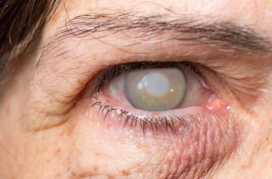 Opacidad del cristalino del ojo, lo que causa visión borrosa o pérdida de visión.