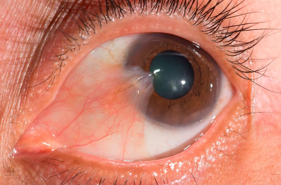 Crecimiento anormal de tejido en la conjuntiva que puede invadir la córnea, causando irritación y visión borrosa.